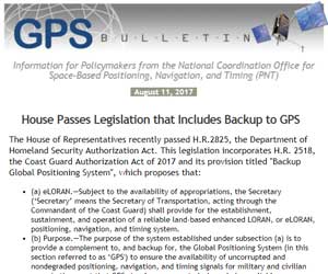- House NDAA Calls for Demonstration of Backup and Complementary PNT
